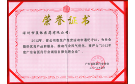 2012 Guangdong Province pharmaceutical industry integrity self-discipline advanced enterprise
