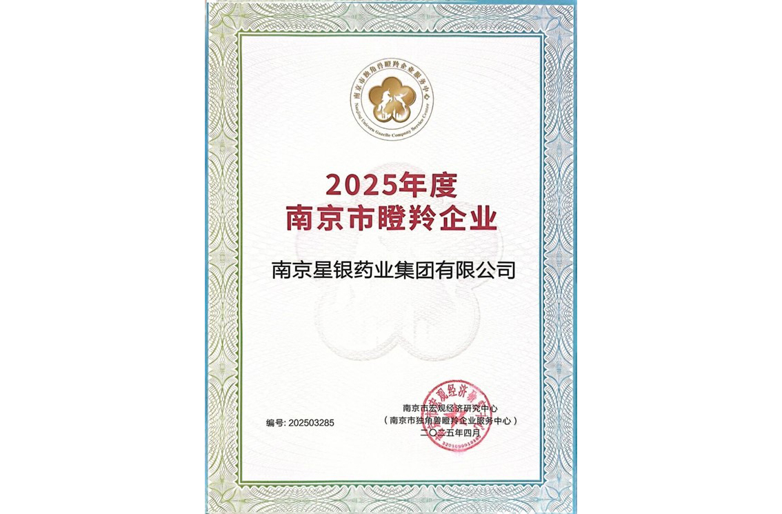 25/06-13Recently, the "2025 Nanjing Unicorn, Cultivation Unicorn, and Gazelle Enterprise List" was officially announced. Nanjing Xingyin Pharmaceutical Group Co.,Ltd. was successfully selected as a gazelle enterprise list based on its innovative breakthroughs and rapid growth in the field of biomedicine. The achievement of this honor signifies that Nanjing Xingyin Pharmaceutical has become an emerging force in promoting high-quality regional economic development in terms of technology research and development, market expansion, and industry influence.