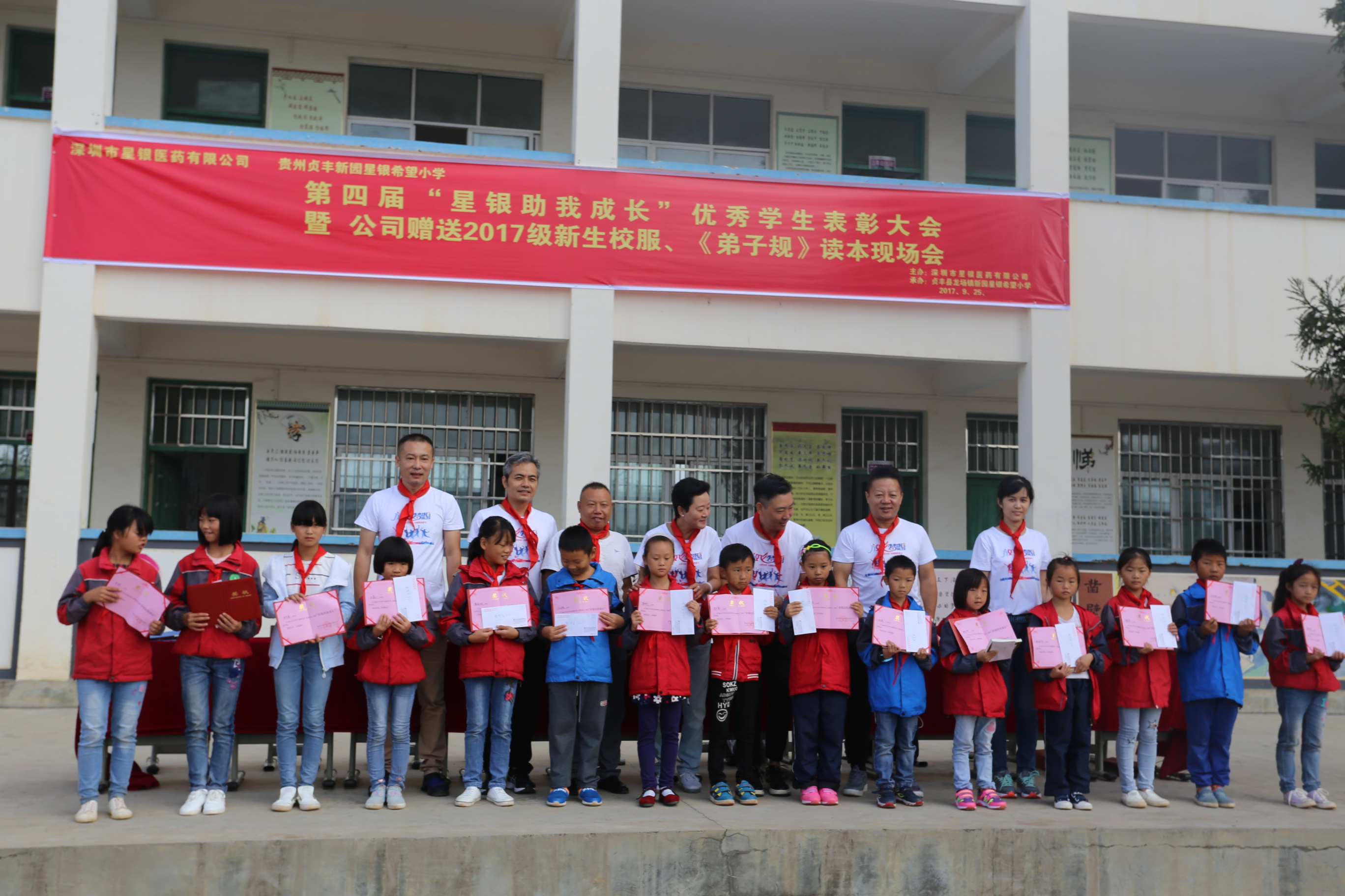 18/08-162017年9月25日上午,,,,,Stake官网医药高管团队来到了贵州省贞丰县新园(Stake官网希望)小学,,,,,加入第四届“Stake官网助我生长”表扬大会暨赠予新生校服和《学生规》国学读本运动。。。。。。。。本次运动为...